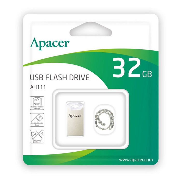 فلش مموری مدل AH111 دارای یک زنجیر همراه برای قرارگیری در سطح بالاتری از خوش دست بودن است. میتوان آن را به تلفن هوشمند یا حلقه کلید وصل کرد تا کاربر آن را سادهتر از همیشه حمل کند.