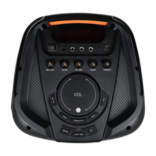 ورودی میکروفون ، دارای چراغ LED ، قابلیت سینک شدن با اسپیکر هم مدل دیگر ، قابلیت Treble و Bass