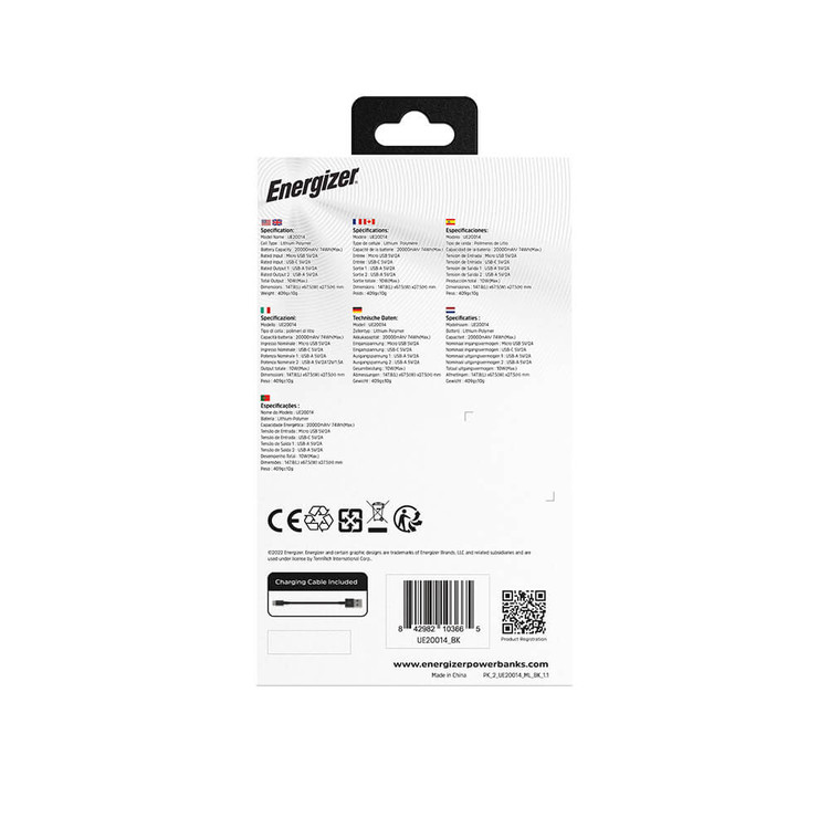 این پاوربانک انرجایزر دارای نشانگر LED Indicator جهت نمایش میزان شارژ و یک کابل شارژ همراه نیز میباشد و قابلیت 72 ساعت شارژ تلفنهای هوشمند با سیستم عامل اندروید را داراست.