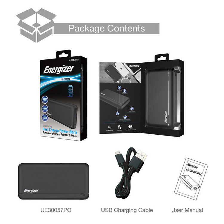 حتما برای شما اتفاق افتاده که در یک مهمانی، جلسه و یا کمپ تفریحی نیاز اضطراری به یک شارژر برای جلوگیری از خاموش شدن تلفن همراهتان پیدا کرده باشید. اما آیا این اتفاق تنها یک بار و برای یک نفر میافتد؟ آیا زمان شارژ شدن دستگاه شما برایتان اهمیت دارد؟ پاوربانک 30000mAh انرجایزر مدل UE30057PQ از سری پاوربانکهای پرقدرت کمپانی انرجایزر به منظور شارژ رسانی سریع به تلفنهای هوشمند تولید شده است.