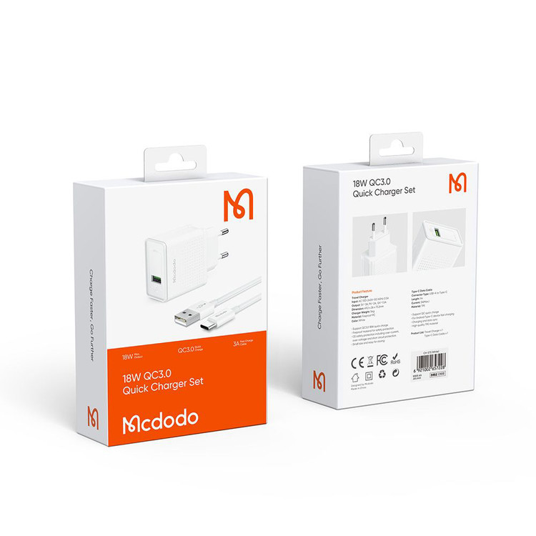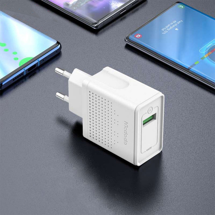 با استفاده از شارژر دیواری مک دودو مدل CH-5750 که از سری محصولات جدید کمپانی «Mcdodo» است میتوانید باتری انواع گوشیهای موبایل و دستگاههای هوشمند خود را در سریعترین زمان ممکن شارژ کنید. توان خروجی این شارژر دیواری 18 وات است که از تکنولوژی کوالکام (QC3.0 و QC2.0) نیز برخوردار است. این محصول دارای یک درگاه خروجی USB است.