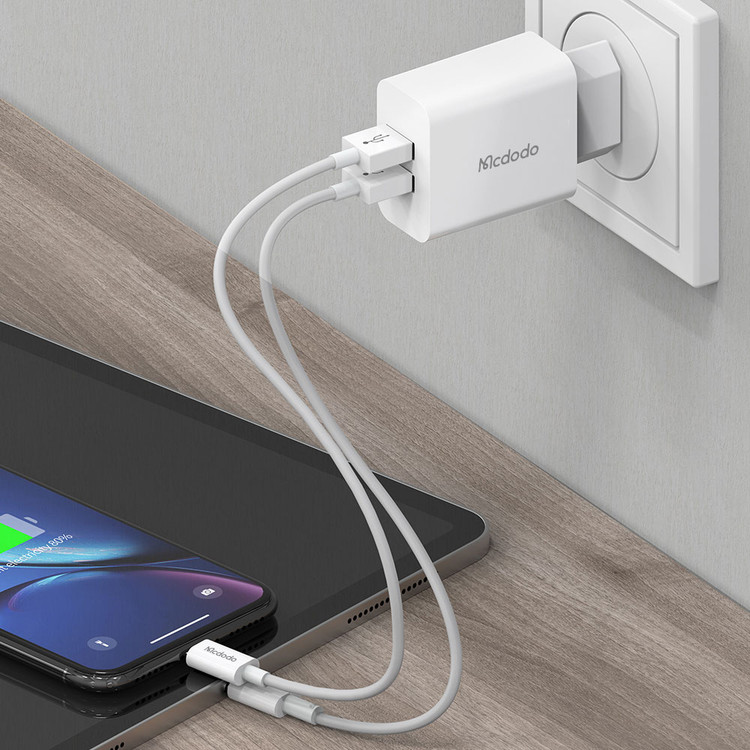با استفاده از شارژر دیواری مک دودو مدل CH-6720 که از سری محصولات جدید کمپانی «Mcdodo» است میتوانید باتری انواع گوشیهای موبایل و دستگاههای هوشمند خود را در سریعترین زمان ممکن شارژ کنید. شدت جریان خروجی این شارژر دیواری 2.4 آمپر است. این محصول دارای دو درگاه خروجی USB است. مقدار ورودی این محصول AC 100-240~50/60Hz و خروجی آن نیز 5V-2.4A است. برای استفاده از این شارژر دیواری کافی است آن را به طور مستقیم به پریز برق خانه یا محل کارتان متصل کنید؛ سپس گوشی موبایل یا دیگر دستگاههای سازگار را با استفاده از یک کابل USB به خروجی شارژر متصل کرده و منتظر بمانید تا باتری آن شارژ شود.