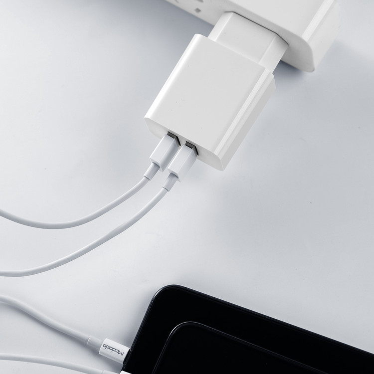با استفاده از شارژر دیواری مک دودو مدل CH-6721 که از سری محصولات جدید کمپانی «Mcdodo» است میتوانید باتری انواع گوشیهای موبایل و دستگاههای هوشمند خود را در سریعترین زمان ممکن شارژ کنید. شدت جریان خروجی این شارژر دیواری 2.4 آمپر است. این محصول دارای دو درگاه خروجی USB است. مقدار ورودی این محصول AC 100-240~50/60Hz و خروجی آن نیز 5V-2.4A است. برای استفاده از این شارژر دیواری کافی است آن را به طور مستقیم به پریز برق خانه یا محل کارتان متصل کنید؛ سپس گوشی موبایل یا دیگر دستگاههای سازگار را با استفاده از یک کابل USB به خروجی شارژر متصل کرده و منتظر بمانید تا باتری آن شارژ شود.