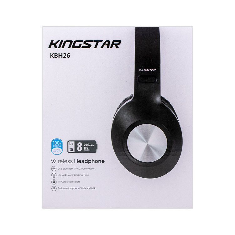 این محصول زیبا و شیک شرکت کینگ استار با ظرفیت باتری داخلی لیتیوم قابل شارژ 270 میلیآمپر یک میکروفون داخلی با قابلیت مکالمه همانند هندزفری را نیز داراست. همچنین زمان پخش موسیقی این محصول با ولتاژ شارژ 5 ولت تا 8 ساعت با 50٪ حجم صدا است. هدبند این محصول نیز از جنس پلاستیک ABS میباشد. قابلیت افزایش یا کاهش ارتفاع در این قسمت آن را برای استفاده هر کاربری مناسب میکند. هدفون بلوتوثی کینگ استار مدل KBH26 فرکانس 20 هرتز تا 20 کیلوهرتز را پشتیبانی میکند.