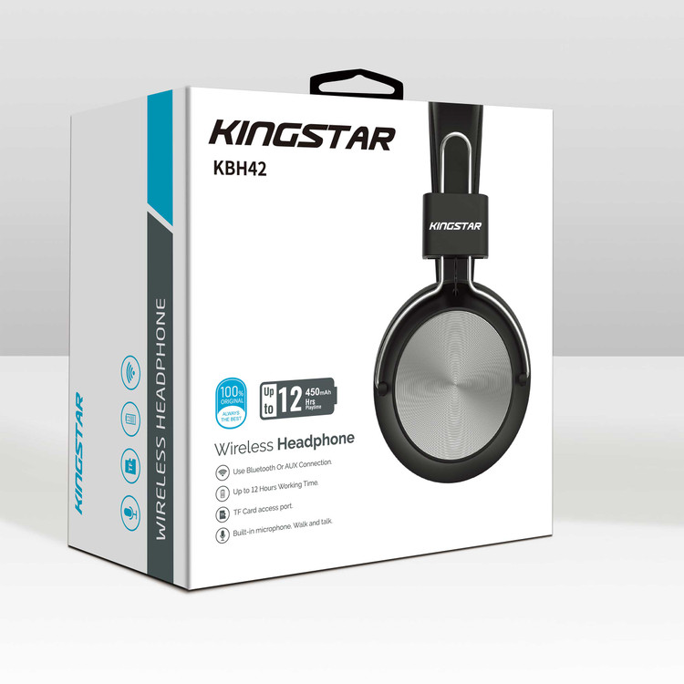 هنگام مواجه شدن با هدفون KBH42 از کمپانی بزرگ کینگ استار اولین چیزی که نظر همگان را جلب میکند طراحی و زیبایی این محصول است. با اینکه این کمپانی این محصول را در نگاه اول ساده طراحی کرده است اما این سادگی شکیلی را برای آن به ارمغان آورده است. این محصول از دسته هدستهای بی سیم و بلوتوثی است.اما این مورد باعث نشده است که کینگ استار در طراحی خود از پلیرهایی که قابلیت اتصال بلوتوث را ندارند غافل شود.
