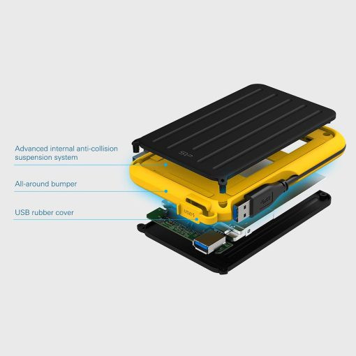 این درایو مطابق با الزامات آزمایش سقوط MIL-STD 810H 516.8 Procedure IV، ضد ضربه است. برای دفاع بیشتر در برابر هرگونه آسیب، یک سپر همه جانبه و محافظت 360 درجهای را فراهم میکند تا بدون نگرانی آن را با خود به همه جا ببرید. در داخل، یک سیستم تعلیق پیشرفته به طور موثر نیروی ضربه را کاهش میدهد و محافظت از کالا را افزایش میدهد.