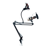 استند متحرک استودیوی میکروفون موبایل و تبلت ریمکس مدل CK100 Pro ، یکی از جدیدترین و پرطرفدارترین محصولات این شرکت است.این محصول مدل تقویت شده Ck100 معمولی این شرکت بوده و دارای فنرهای تقویت شده و از جنس فلز آلومنیوم و ABS می باشد.این استند ایده آل برای استودیو پخش رادیویی ، استودیو پخش صدا ، لایوهای زنده شبکه های احتماعی ،کنفرانس ها ،صحنه ها ، و ایستگاه های تلویزیونی،لایو استریم ها،ضبط صدای خانگی و غیره می باشد. دارای پایه نگهدارنده گوشی و تبلت بوده که از 11 تا 18 سانتی متر توایی نگهداری انواع گوشی و بالاخص تبلت را دارد و توانایی چرخش 36.0 درجه بطور کامل را دارد.پایه بازویی قیچی مجهز به فنر فوق العاده قوی است تا بتواند وزن زیادی را تحمل کند.دارای یک نویز گیر یا پاپ شیلد بوده که کاملا در برابر قطرات بخار دهان ضد باکتریال می باشد. این هلدر بصورت افقی یا عمودی بر روی انواع میزه کتابخانه ها تخت خواب و...براحتی نصب میشود و نصب راحتی داشته و براحتی نیز قابل حمل و نقل می باشد.این پایه استودیویی جدید برخلاف مدلهای قبلی توانایی نگهداری انواع میکروفونها را دارد. پس از متصل کردن قطعات ، شما دارای یک استند با قابلیت نگهداری میکروفون ، موبایل یا تبلت و یک نویزگیر میکروفون خواهید بود که میتوانید پایه استند مورد نظر را نیز به میزخود از طریق گیره تعبه شده در آن ، متصل نمایید. این محصول مناسب کلیه کسانی است که می خواهند با هزینه کم یک استودیوی ضبط کوچک اما حرفه ای داشته باشند.