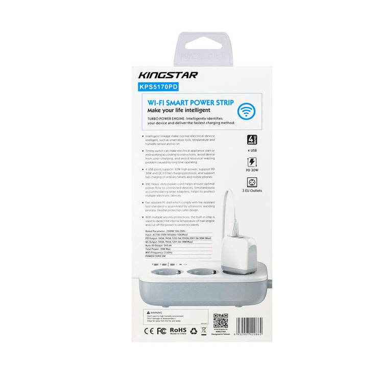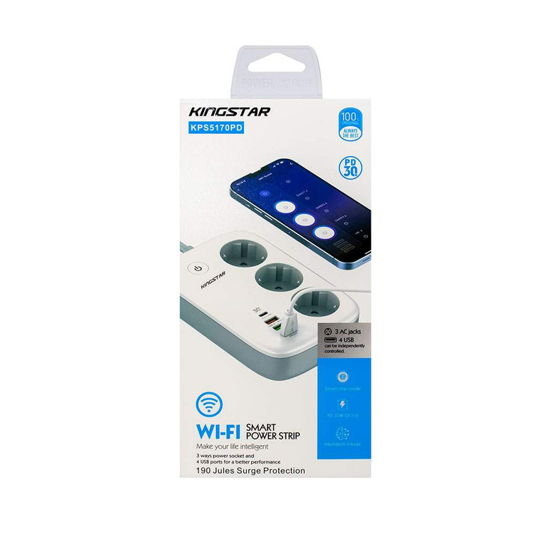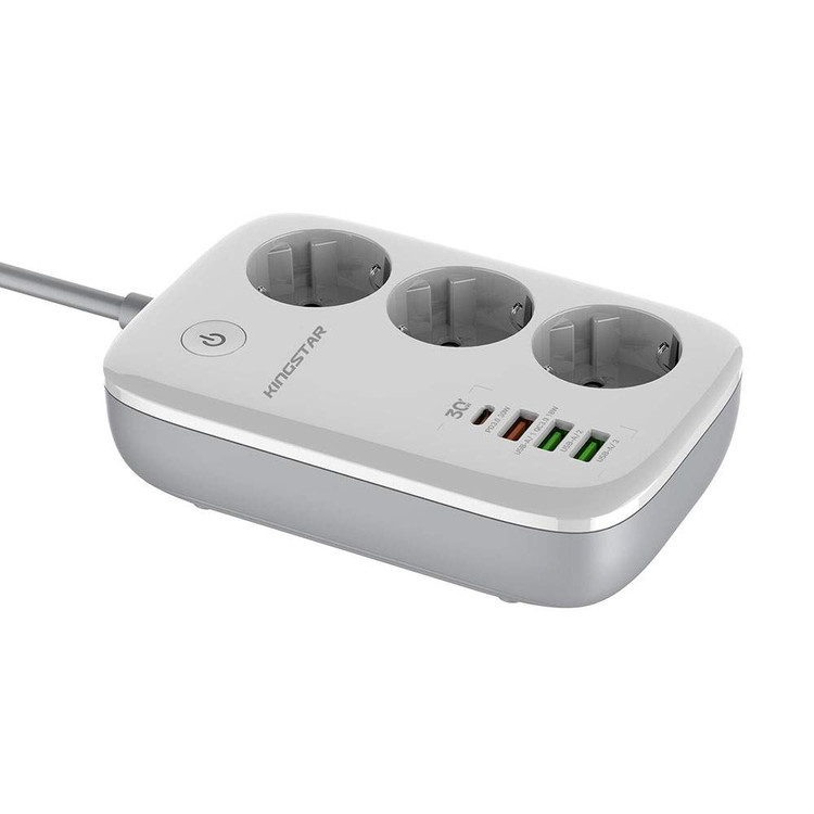 برند کینگ استار (KINGSTAR) پس از تولید موفق کالاهای الکترونیک و ورود بازار ایران، به تولید لوازم جانبی از جمله سه راهی برق روی آورد و محصولات باکیفیت و قیمت مناسبی را روانهی بازار کرد. این چند راهی برق در ابعاد 155*105*40 میلیمتر و وزن 440 گرم قادر است خروجی یک پریز برق شهری را به 3 پریز برق، 3 پورت USB و یک پورت تایپ سی (Type-C) تبدیل کند.