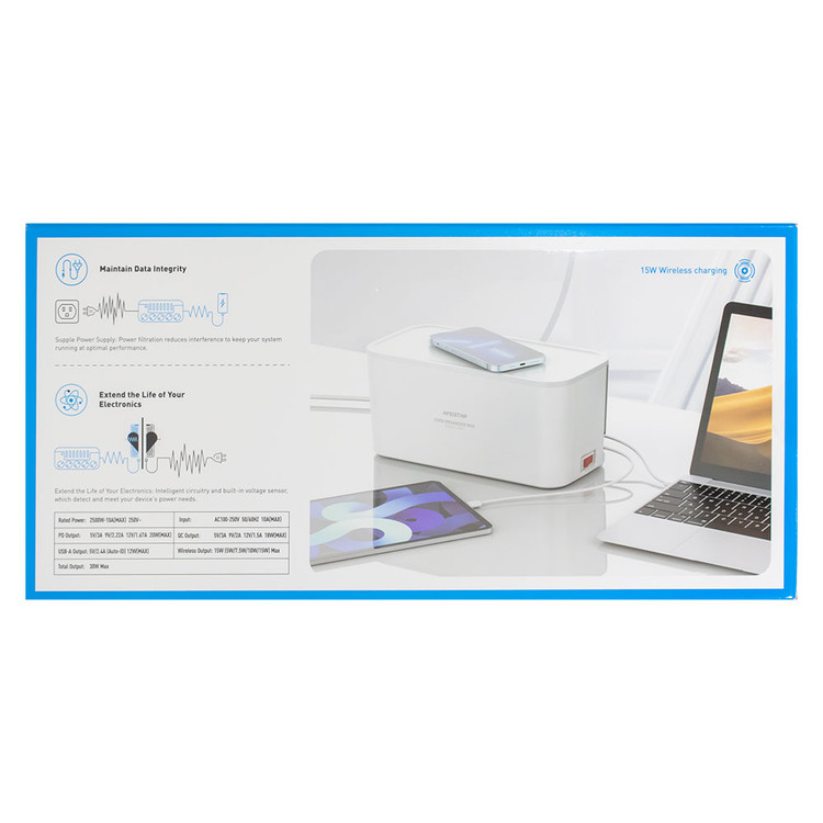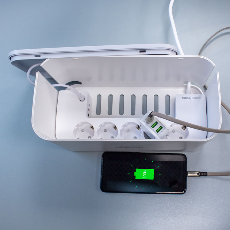 باکس تعبیه شده دور این چند راهی میتواند به شما کمک کند تا از تجمع سیمهای اضافی بپرهیزید و درون باکس قرار دهد. از دیگر مزایای این باکس که خیلی هم مورد استقبال قرار گرفته بحث استفاده از آن بعنوان شارژر بییم یا وایرلس است که با حداکثر توان خروجی 15 وات امکان شارژ پر سرعت را به تلفن همراه شما خواهد داد.