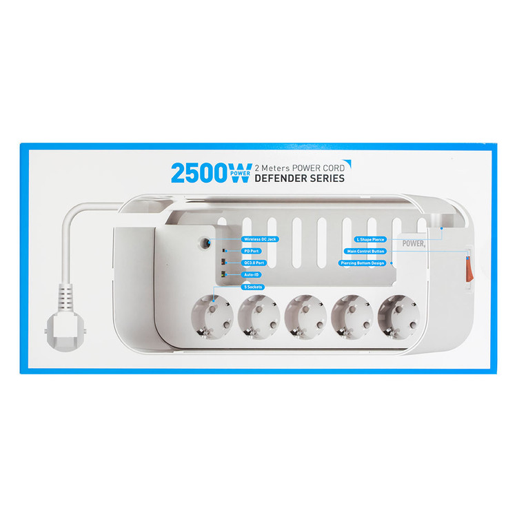 این محصول با طراحی سفید رنگ و با یک سیم به طول 2 متر ارائه شده است. از دیگر نکات مهم این محصول جنس بدنه آن است که از پلاستیک با کیفیت و مقاوم ABS ساخته شده و ضد اشتعال است.