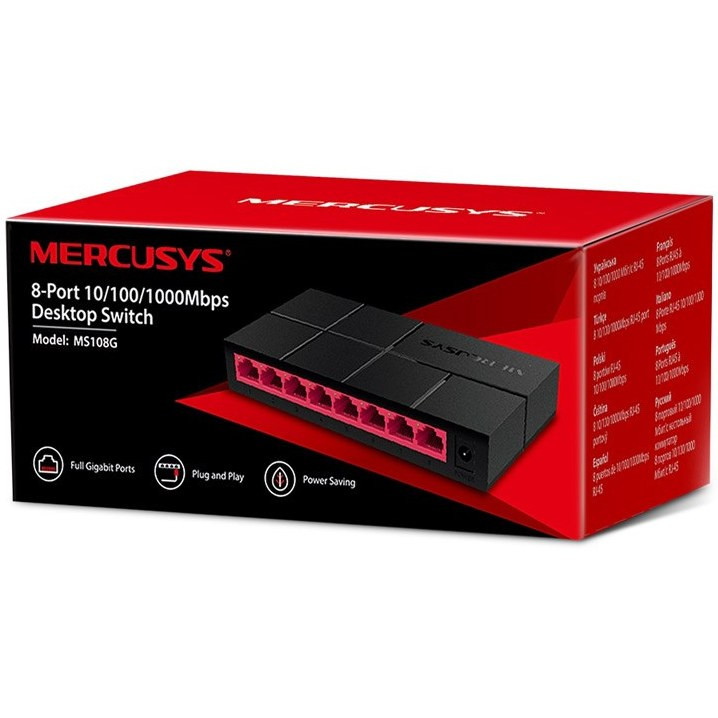 سوئیچ شبکه MS108G از برند MERCUSYS یک سوئیچ دسکتاپ با هشت پورت 10/100/1000 مگابیت بر ثانیه است1. این سوئیچ، با ظرفیت 16Gbps، امکان گسترش شبکه سیمی را فراهم میکند. ویژگیهای مهم آن عبارتاند از: