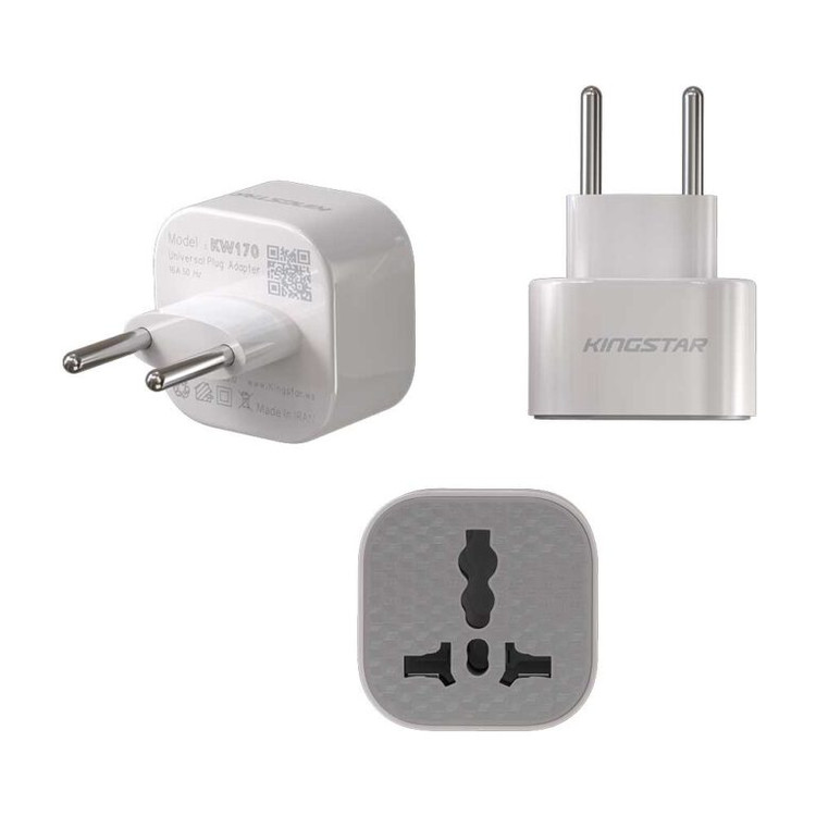 پیش از معرفی تبدیل برق کینگ استار مدل KW170 باید این مورد ذکر شود که همانطور که همهی ما میدانیم تمامی لوازمهای برقی در سراسر جهان از یک استاندارد واحد پیروی نمیکنند و قسمت اتصال آنها به پریز، ممکن است سه تایی یا دوتایی باشد. چون پریزهای کشورما پریزهای دوتایی هستند، برای اتصال لوازم برقی خارجی که سه شاخه دارند باید از مبدل سه به دو استفاده نماییم.