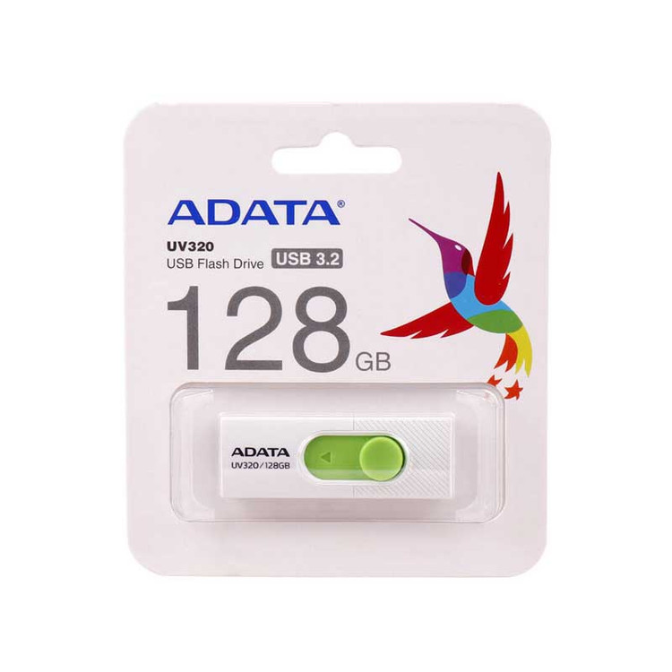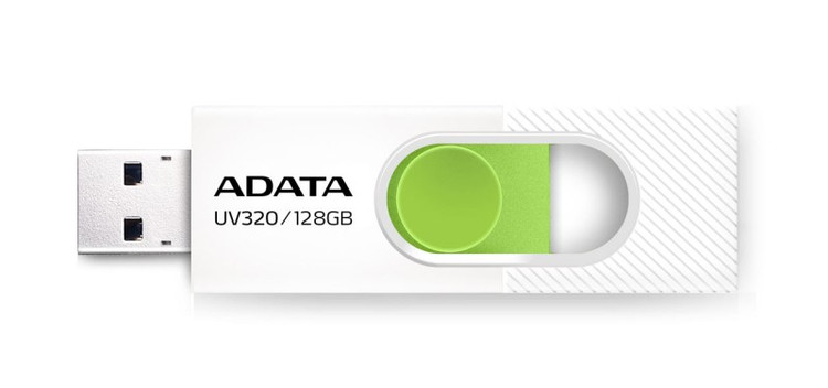 مدل «UV320» از سری محصولات فلش میموری شرکت «ای دیتا» (ADATA) است که در ظرفیتهای 8 تا 128 گیگابایتی و در رنگهای مختلف عرضه میشود. این فلش میموری از حافظه 128 گیگابایتی بهرهمند است؛ با این مقدار ظرفیت، حجم بسیار زیادی از اطلاعات؛ از قبیل موسیقی، فیلم و ... را میتوانید همیشه در کنار خود داشته باشید . در راستای طراحی جمعوجور، شرکت ای دیتا بر روی UV320 یک کلید تعبیه کرده است که با فشار دادن آن به جلو، درگاه USB به بیرون هدایت میشود و برای برگرداندن آن به داخل، بایستی کلید را به عقب بکشید. درگاه USB این حافظه فلش USB 3.2 است و از سرعت استاندارد انتقال اطلاعات 10 گیگابیت بر ثانیه برخوردار است. این فلش میموری با بیشتر دستگاههای الکترونیکی اعم از لپ تاپ، کامپیوتر، تلفن هوشمند، تلویزیون هوشمند، سیستم صوتی خودرو و ... سازگاری دارد. حافظه فلش UV320 در برابر آب، گردوغبار و ضربه مقاوم نیست؛ بنابراین هنگام استفاده، مواظب صدمات احتمالی باشید